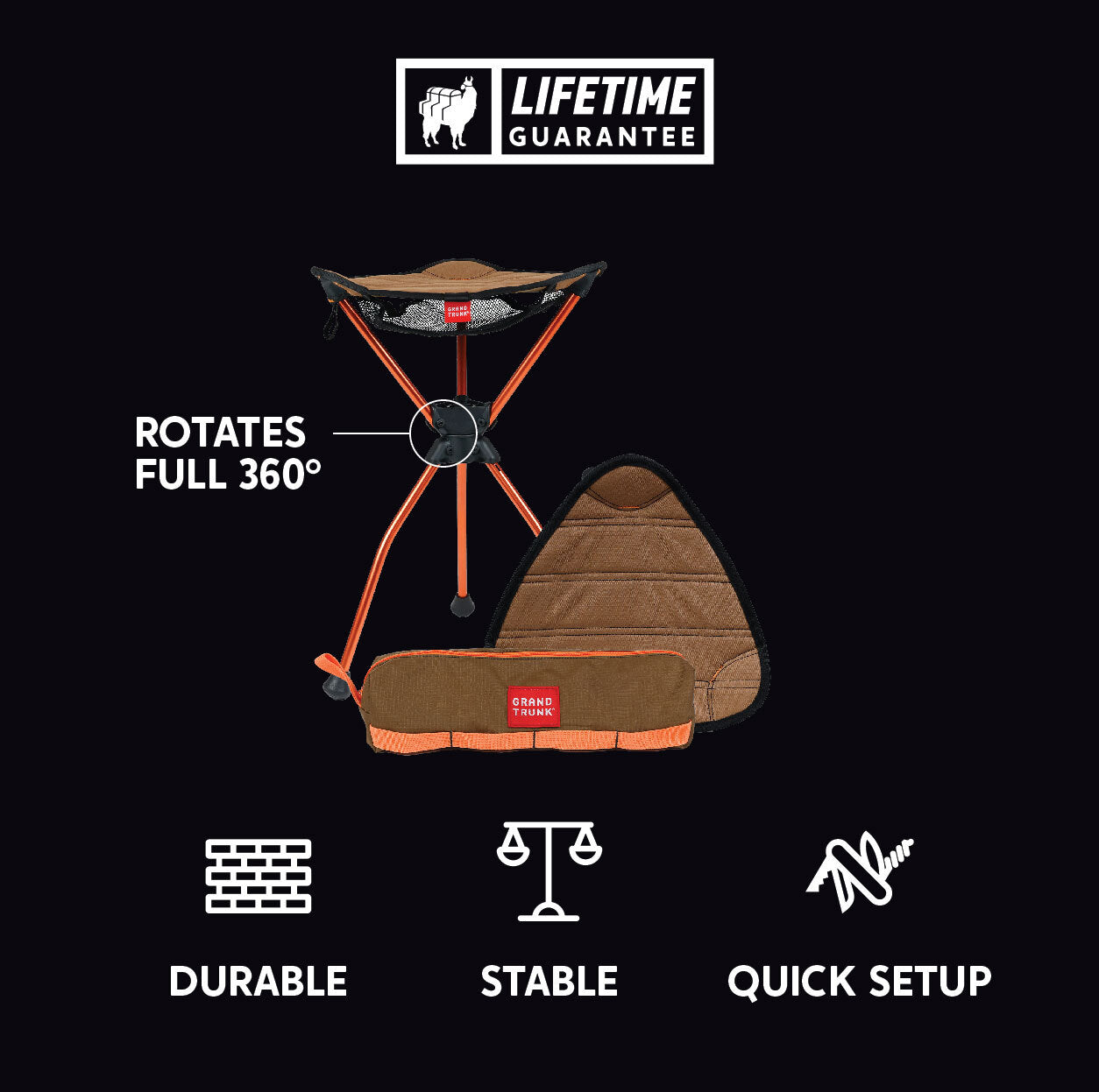 Introducing the Grand Trunk Compass 360° XT (Xtra Tall) Swivel Stool! Crafted with the same durability and innovation as its predecessor, the XT takes comfort to new heights with its extra tall design, standing at a generous 20 inches—comfort and convenience at it's pinnacle!