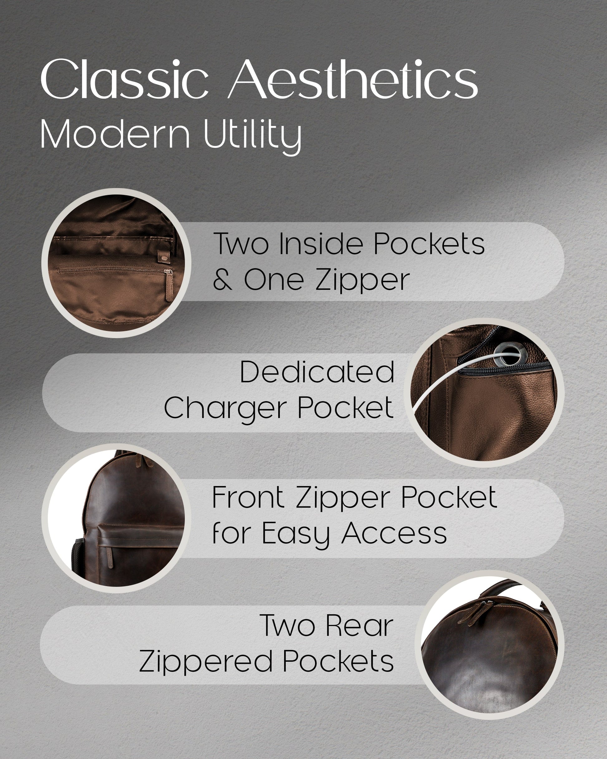 - HOLDS STANLEY/YETI BOTTLES + EXTRA ACCESSORIES : A genuine leather travel backpack equipped with a large bottle holder that can fit Stanley cups and Yeti bottles, plus two YKK zippered pockets for phones, keys, wallets, and tech accessories. Perfect for hikes, campus life, commuting, and vacationing.