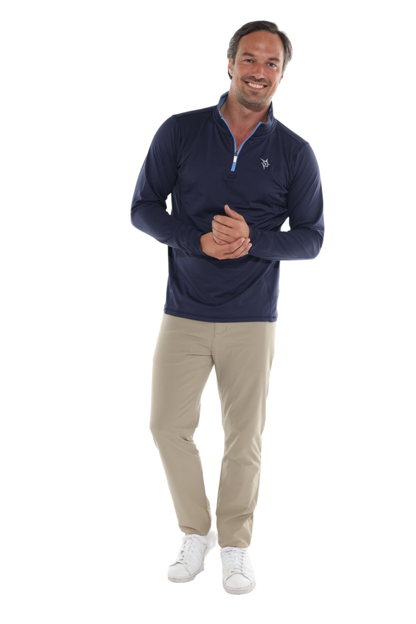 The tip of Long Islands east end. Montauk is famous for many things and just a great place to visit with family and friends. The Montauk 1/4 zip pullover features soft brushed poly spandex and side venting, for a great hand feel and just the right amount of stretch. Great for a harbor walk, out to dinner or a round of golf when a long sleeve top is needed.
